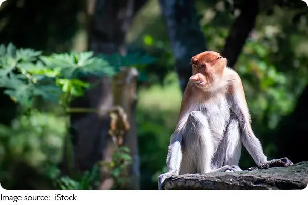 The proboscis monkey, with its distinctive large nose and pot-bellied figure, is one of the most recognizable and unique primates in the world.
